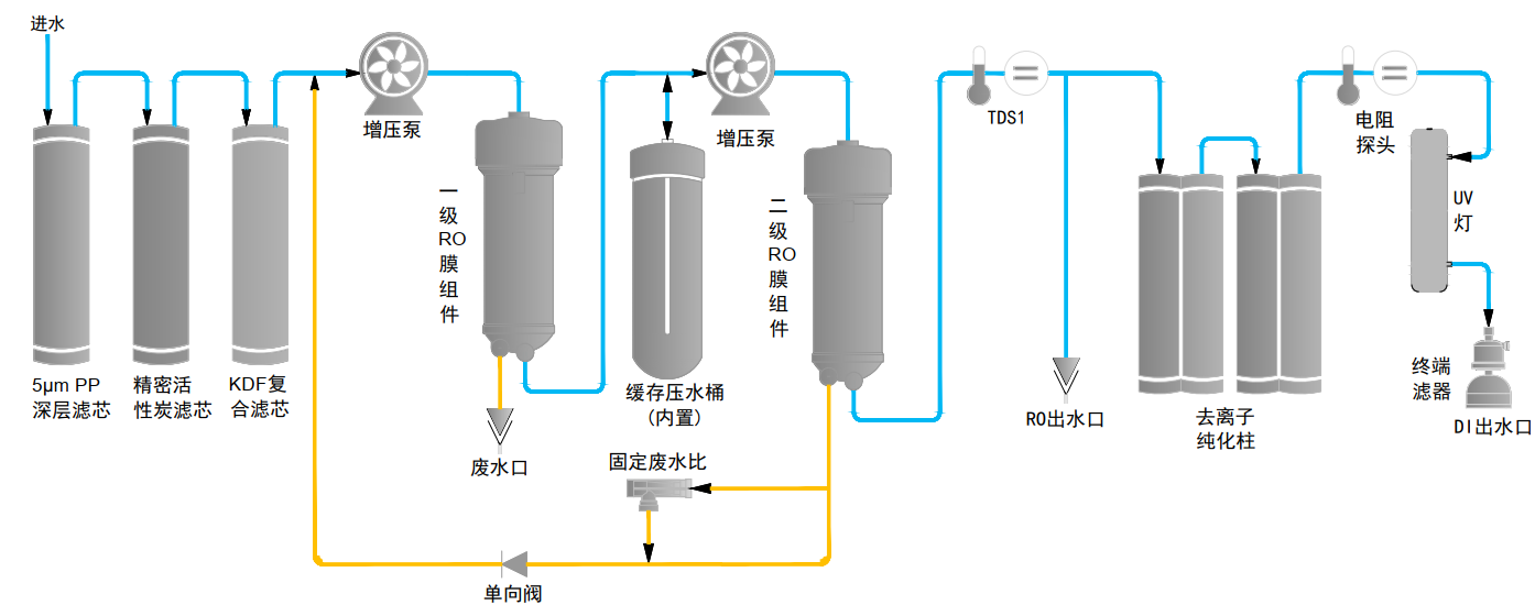 | 一級RO水 | 離子截留率98%-99%(新膜),有機物截留率>99%(MW>200道爾頓)、顆粒和細(xì)菌截留率>99% | |