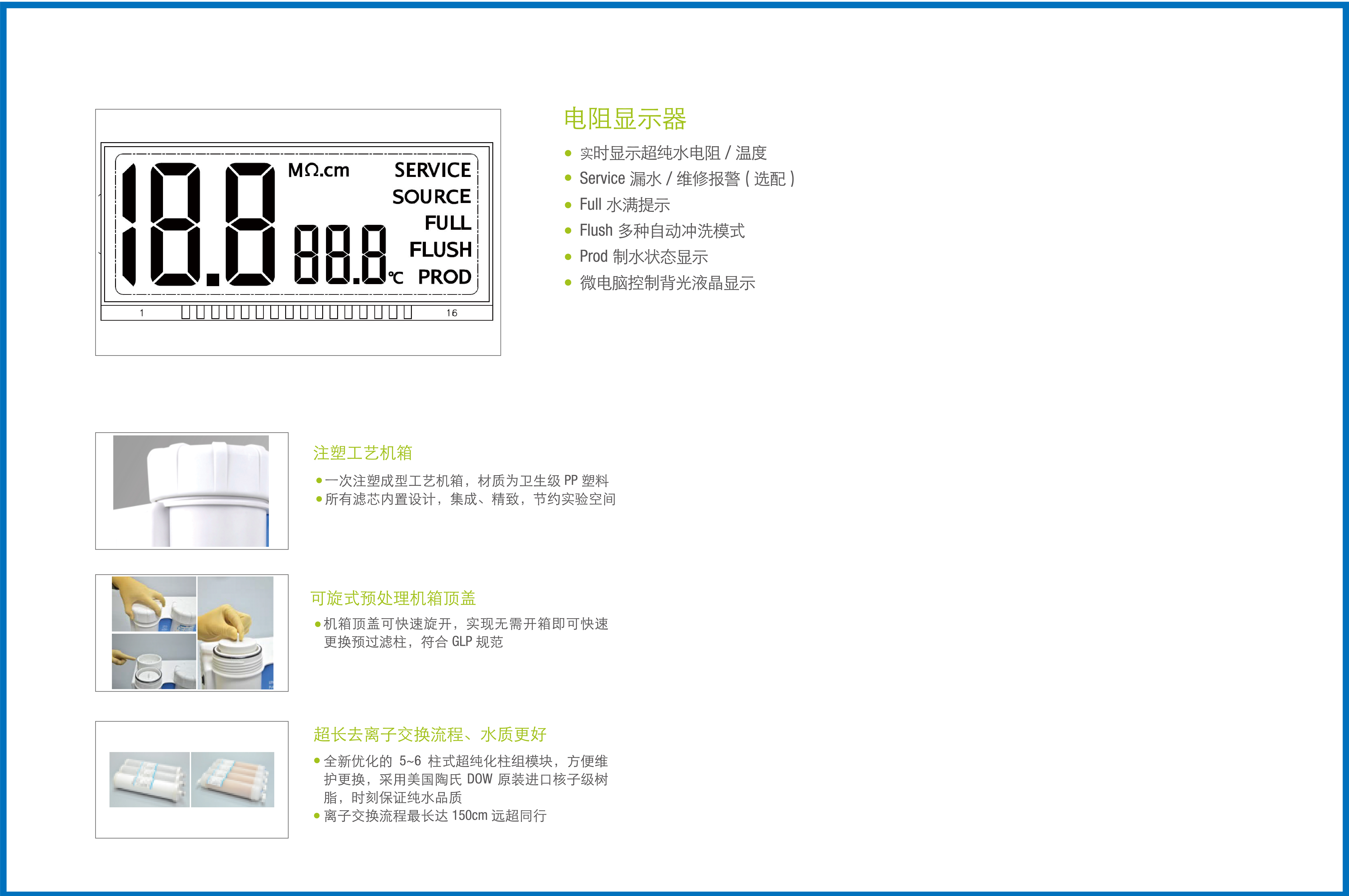 | 原水要求 | RO水、蒸餾水及以上等級的純水,水溫5-35℃,水壓0-1bar | |||